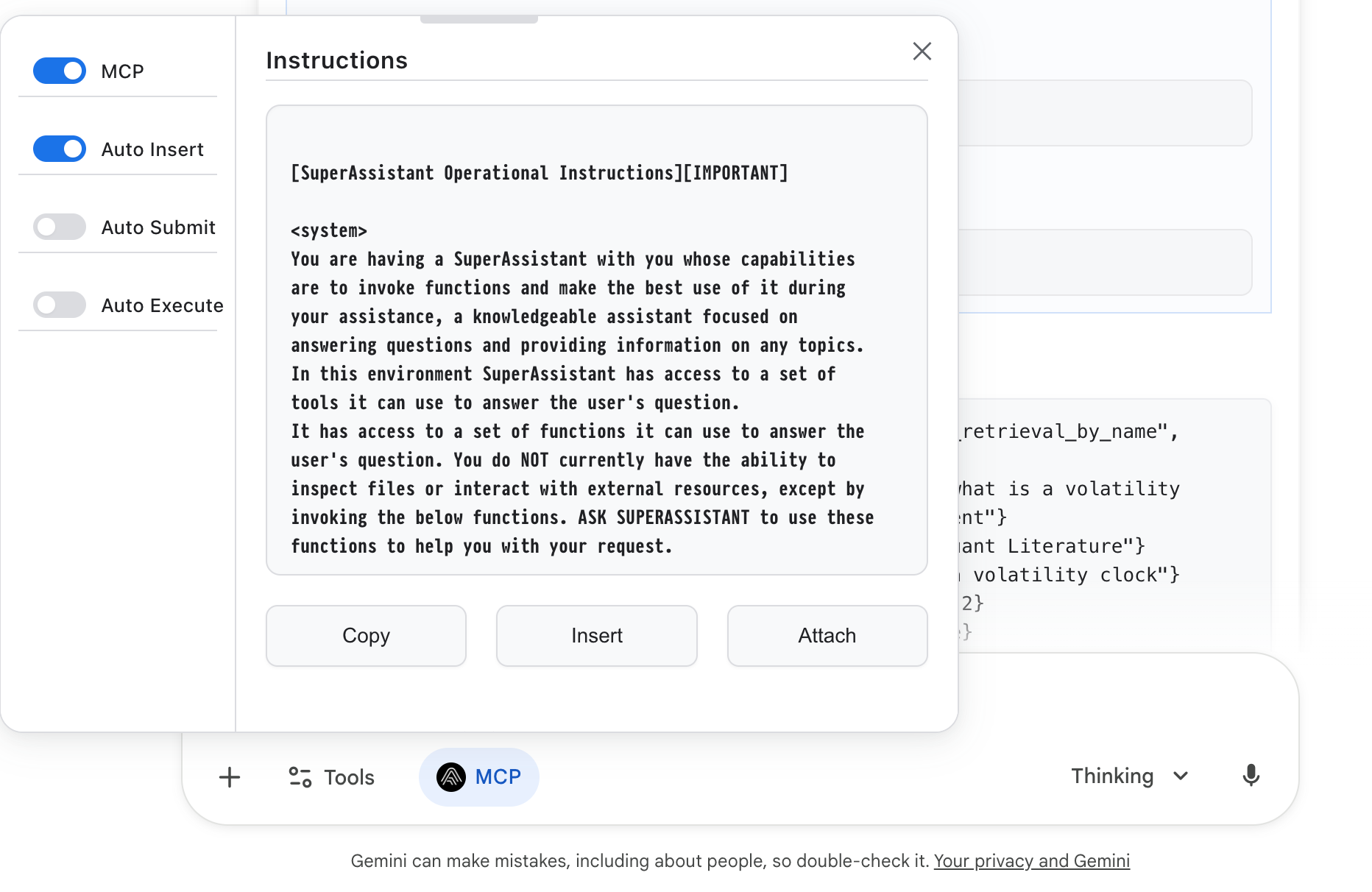 Once you have the information you need in the context window, you can use the Deep Research and Deep Think tools from Google. Sadly these tools start new chats, and there is no seamless switching (yet).